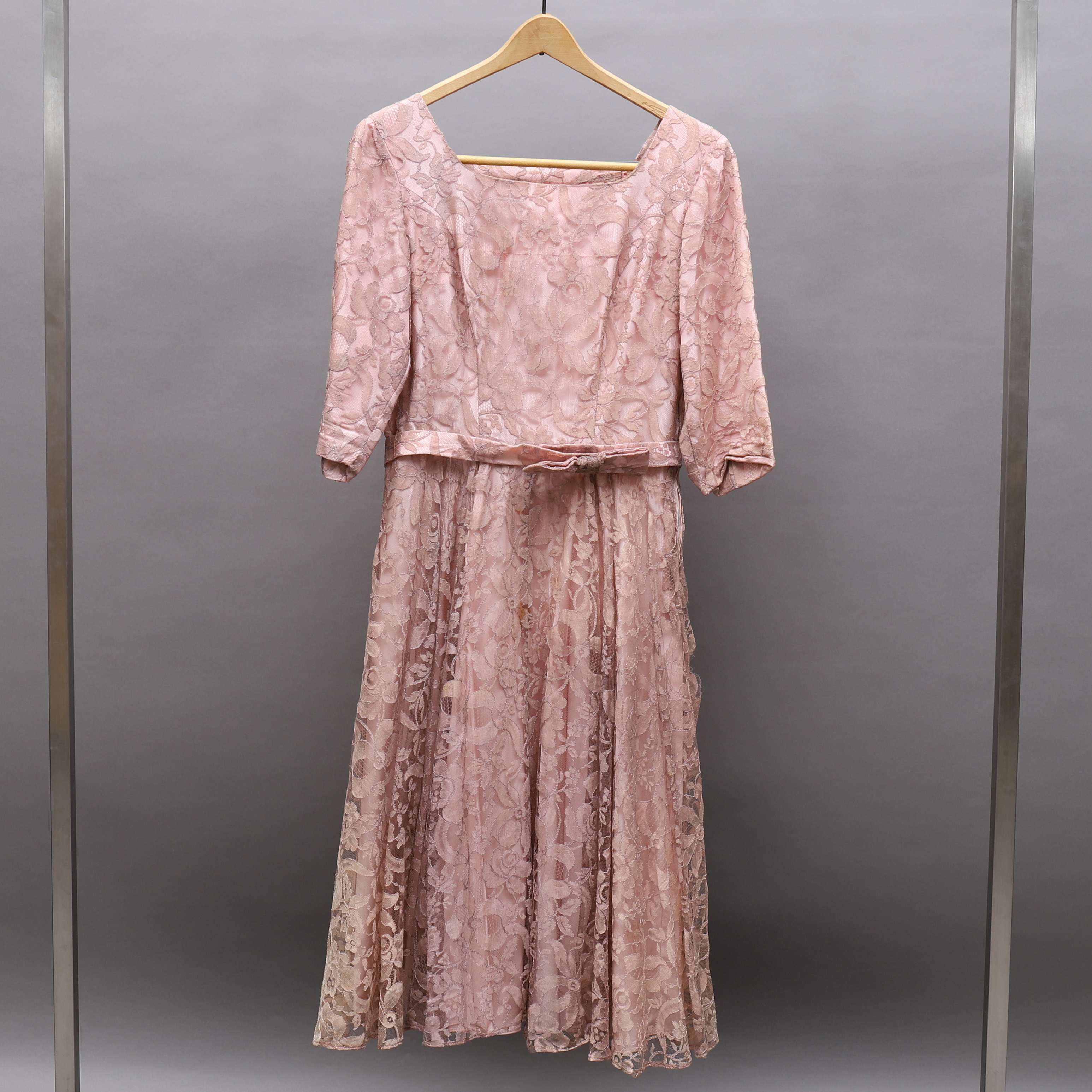 989769. KLÄNNING, spets, satin och tyll, 1900-tal.