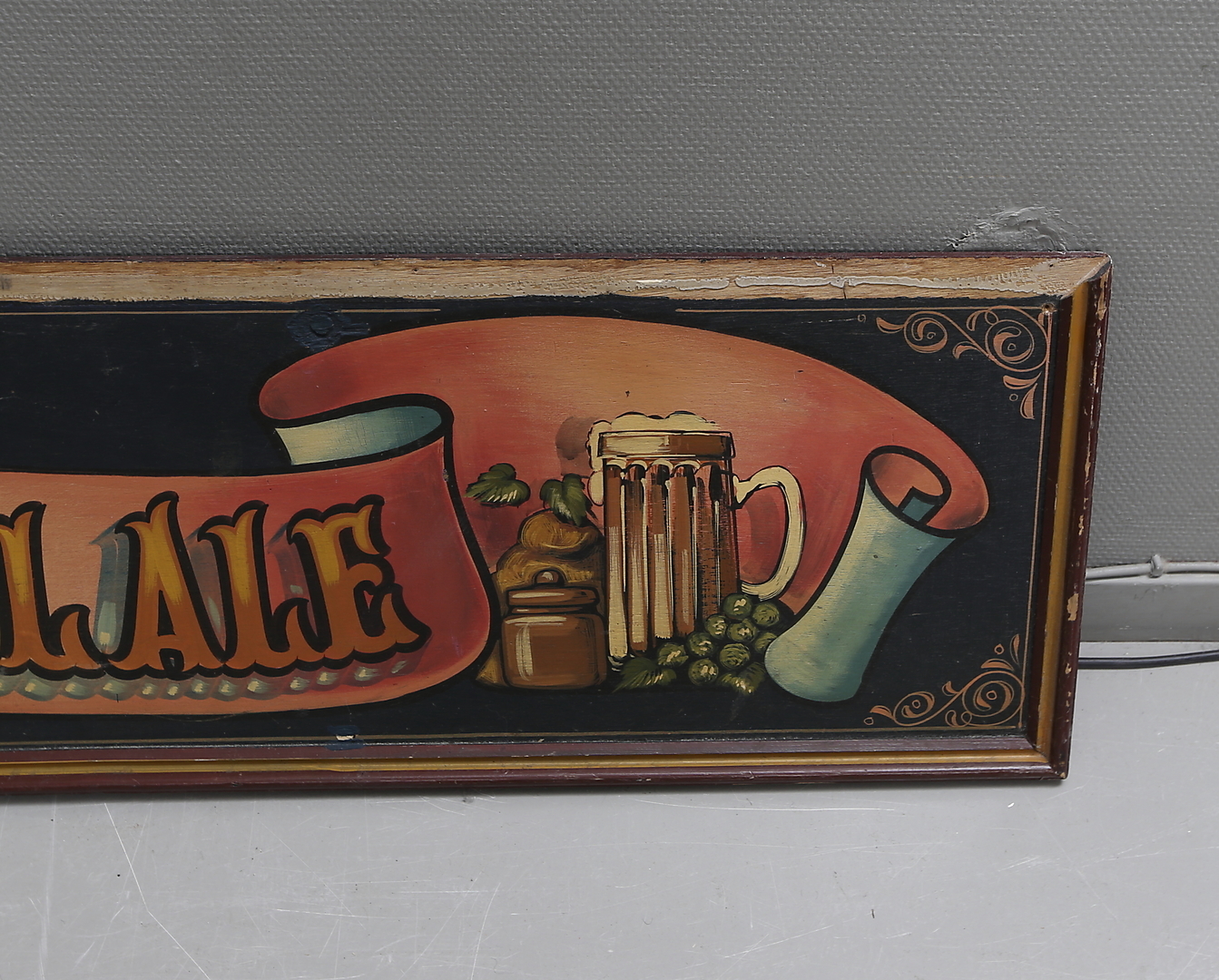992797. PUBSKYLT, trä, "Fine Wine-Real Ale".