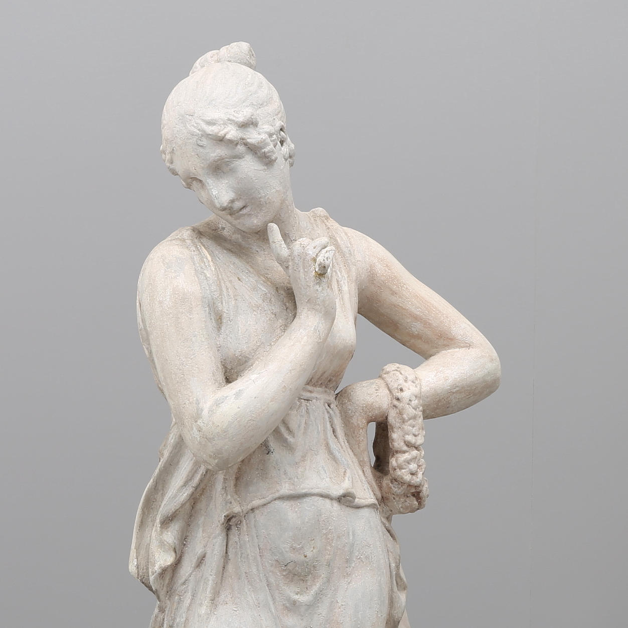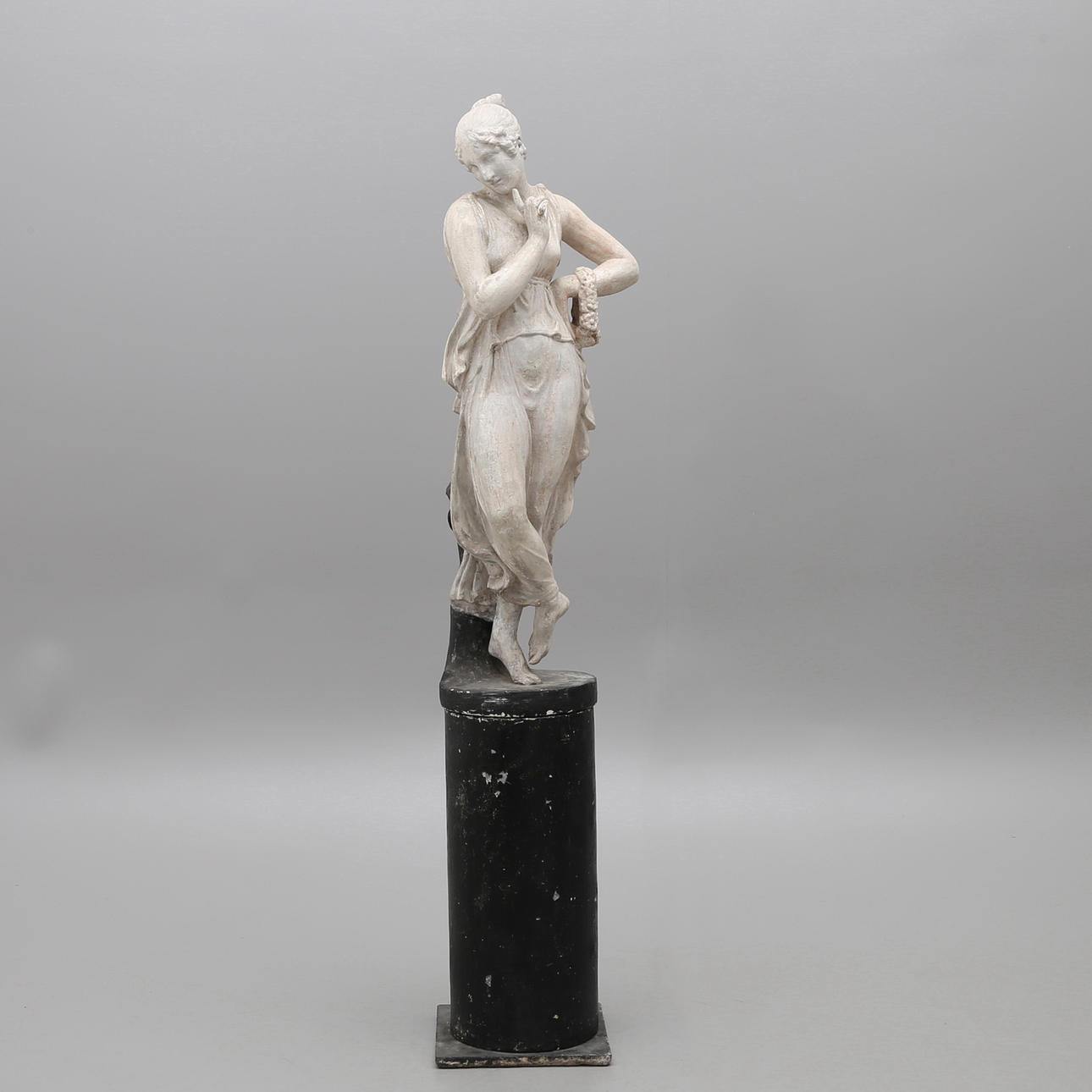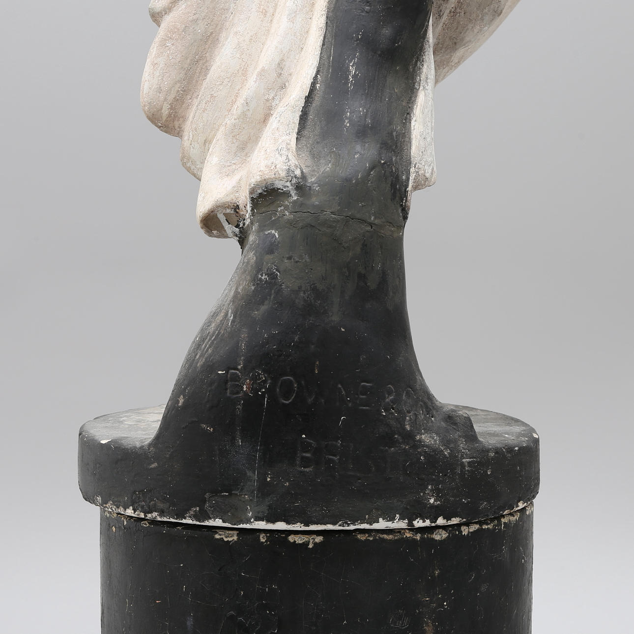 Märkt Browne&Co Bristol, 1800-talets senare del, gips, höjd ca 109 cm, tillkommer stengodspostament, höjd 63 cm.