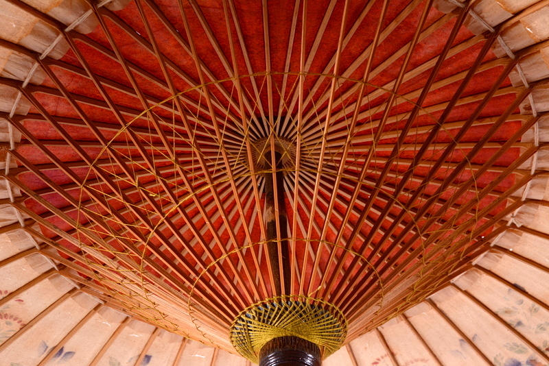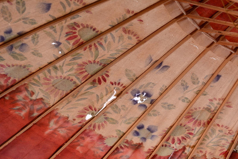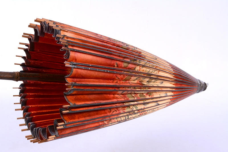 PARASOLL, trä, bemålad papp, 1900-talets första hälft.