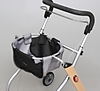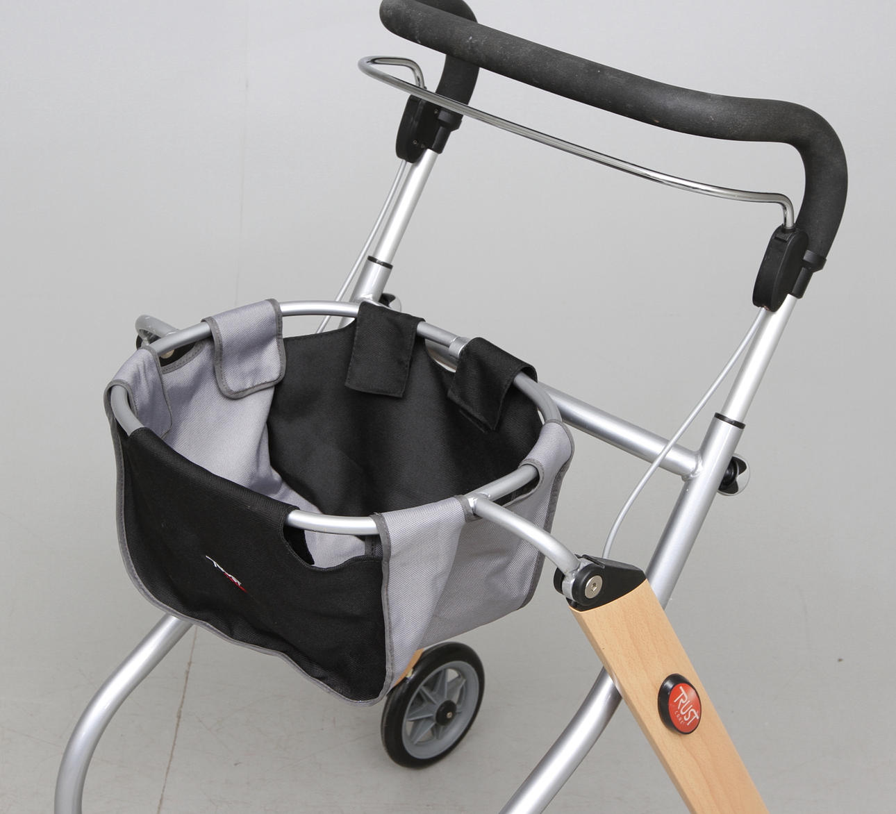 Med korg och bricka.