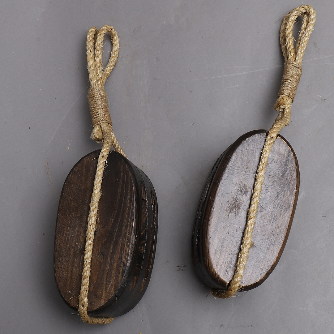 999444. TALJA/BLOCK, ett par, trä och rep.
