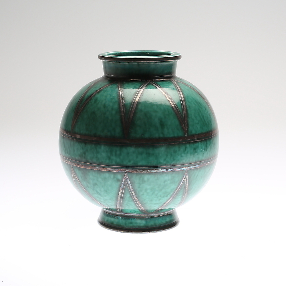 Här kunde man till exempel se [Wilhelm Kåges] (https://auctionet.com/sv/artists/85-wilhelm-kage) ”Argenta” för första gången. En blivande storsäljare som är en god förespråkare med sin dekor i silver mot grönt och ofta med geometriska dekorer.