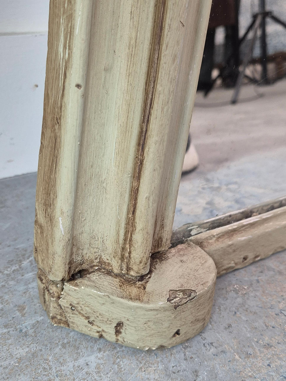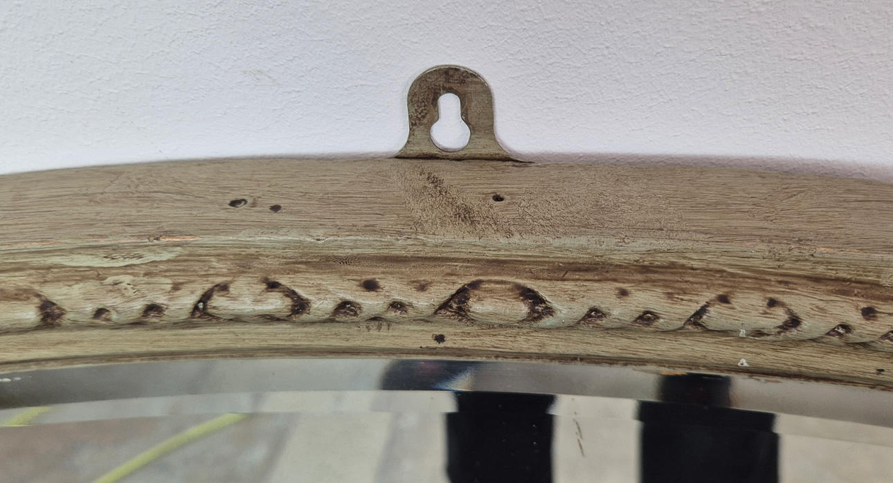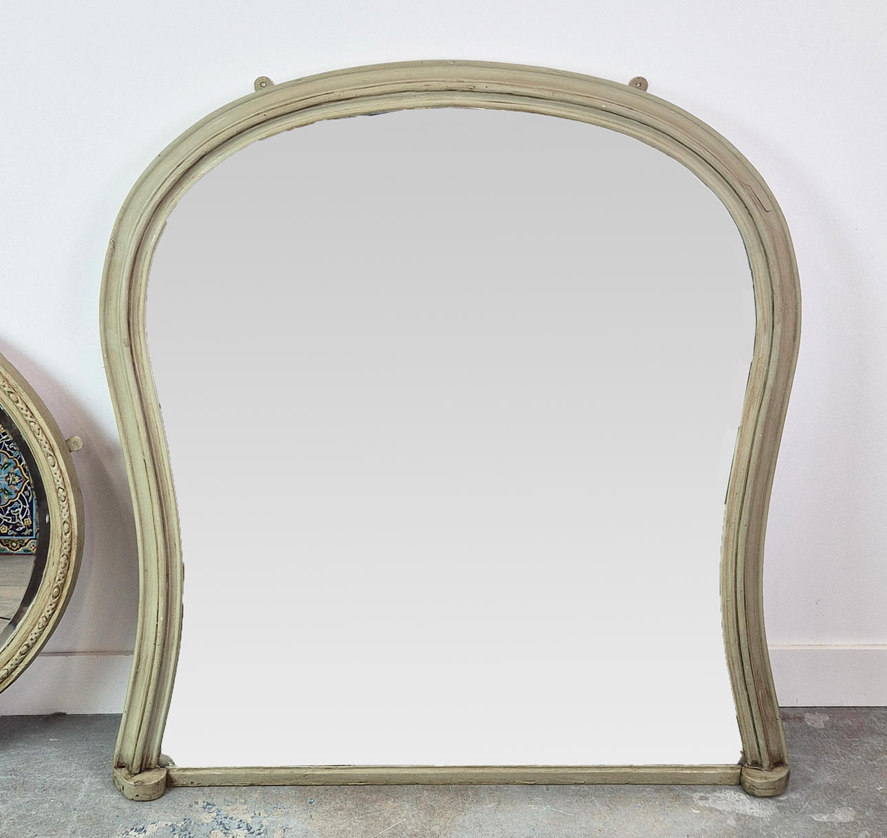 Viktoriansk och senare gråmålad övermantel, 113cm H x 109cm B och en målad oval väggspegel, 111cm x 85cm.