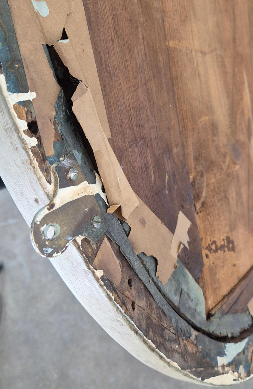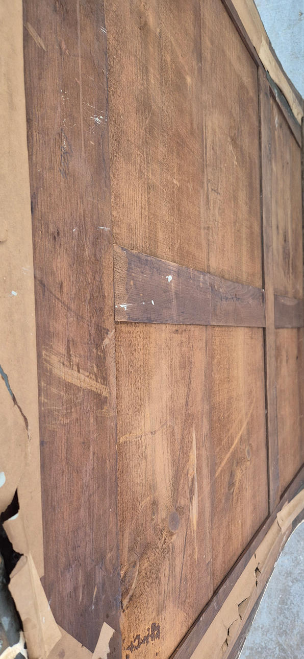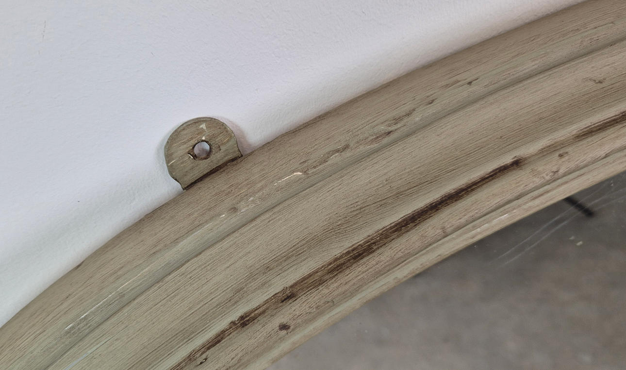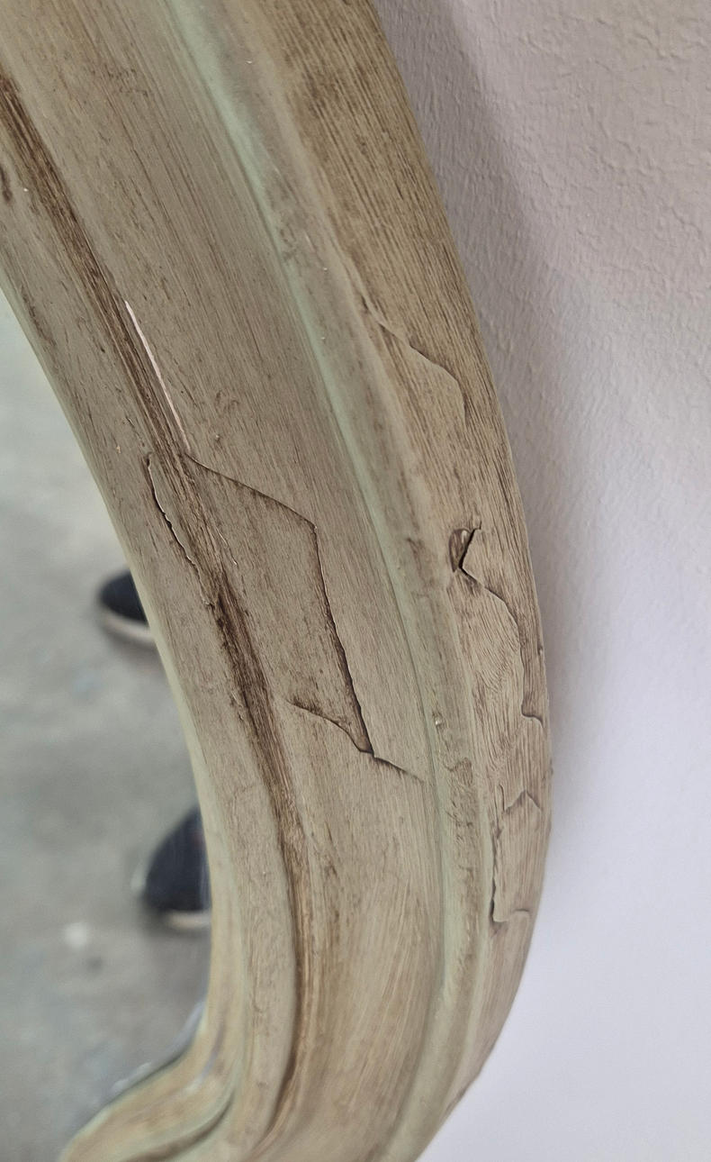 Viktoriansk och senare gråmålad övermantel, 113cm H x 109cm B och en målad oval väggspegel, 111cm x 85cm.