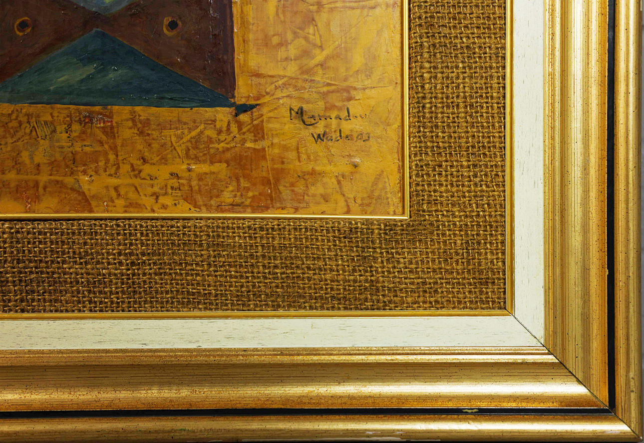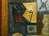 Olja och textil på duk, 83cm x 67cm, inramad.