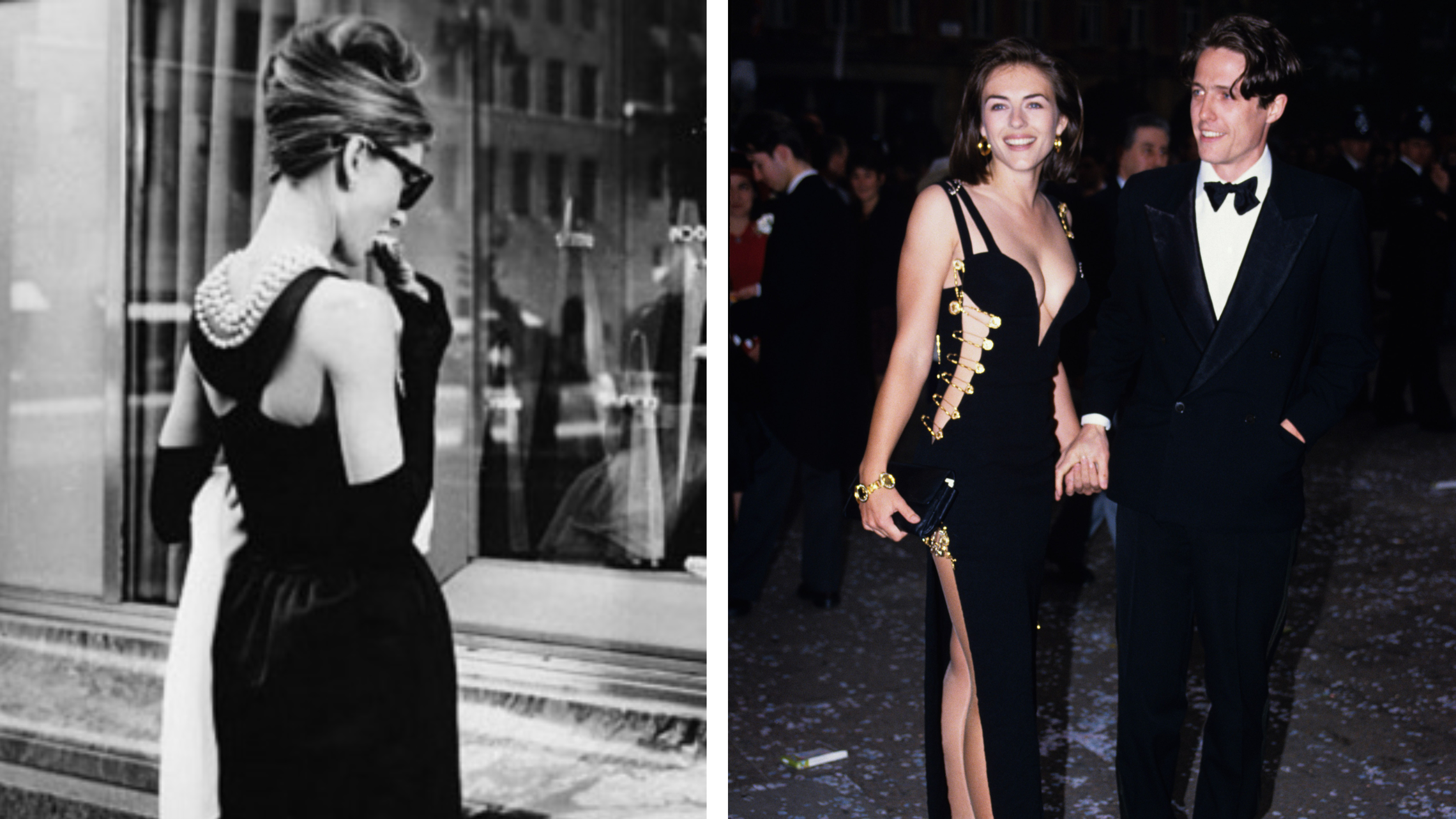 Audrey Hepburns lilla svarta från "Breakfast at Tiffany’s" tillsammans med pärlor, handskar och solglasögon, har blivit en ikonisk outfit – liksom Elizabeth Hurleys säkerhetsnålsklädda Versace-klänning från premiären av "Fyra bröllop och en begravning".