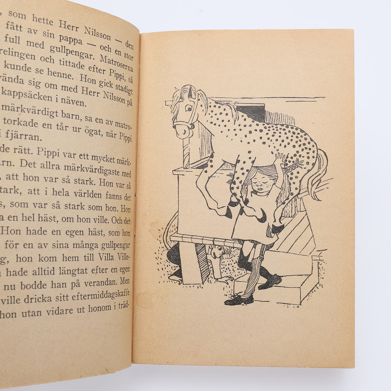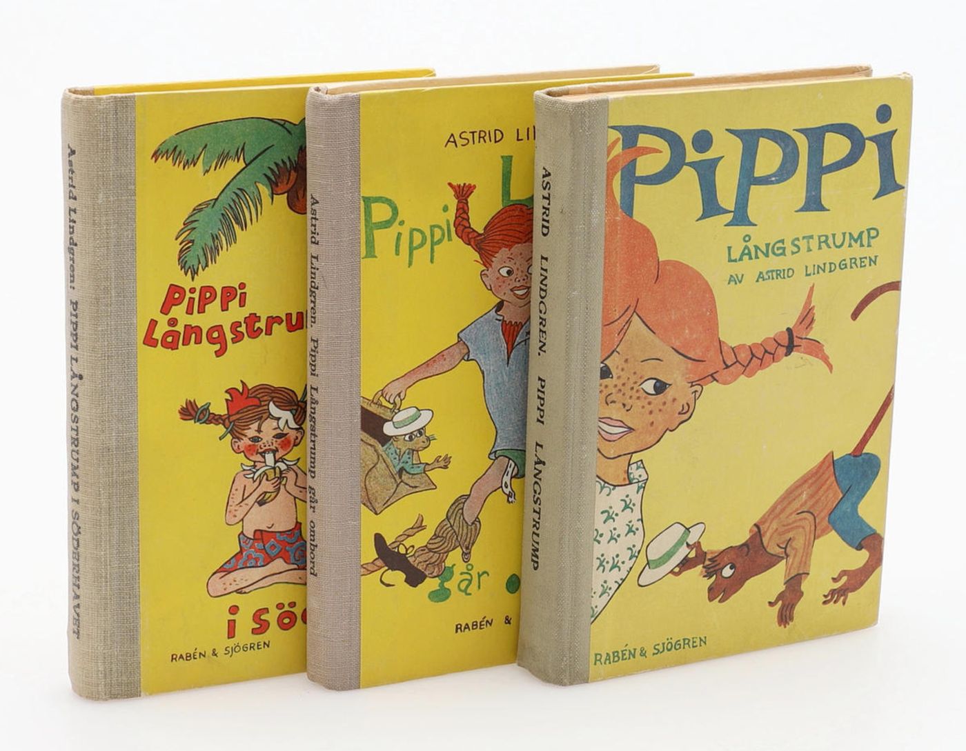 De mest eftertraktade originalutgåvorna är de tre första i Astrid Lindgrens klassiska svenska trilogi, utgivna av Rabén & Sjögren mellan 1945 och 1948 med illustrationer av Ingrid Vang Nyman: Pippi Långstrump (1945), Pippi Långstrump går ombord (1946) och Pippi Långstrump i Söderhavet (1948). Dessa utgåvor är ofta inbundna i pappersband med tryckta omslag och klädda ryggar.
