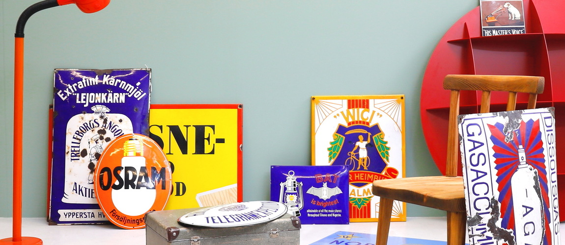 Reklam- och varumärkeshistoria står i förgrunden när Gomér & Andersson Nyköping presenterar En samling emaljskyltar!