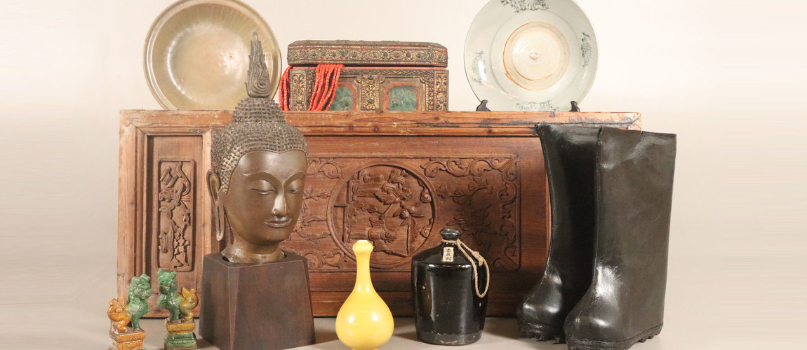 Hos Höörs Auktionshall får vi ta del av en samling som manifesterar sig i drygt 160 utrop. Här finns naturligtvis det så välbekanta blåvita porslinet ostindiska kompanigodset men fyller endast en del av det rikliga utbudet. Här finns alltifrån en kambodjansk urna med runt 500 år på nacken till ett par betydligt yngre kineska stövlar och ett nepalskt halssmycke. Till de förmodade toppnumren hör ett par äldre bronser, samt arbeten från Song/Yuan-dynastierna. Ett syskrin från 1800-talet utmärker sig med sitt intrikata detaljarbete. Likaså är ett rökelsekar i celadonfärger väl värt ett extra ögonkast. Men dessa nummer är endast några axplock i ett tema som rymmer en hel del smått och gott.