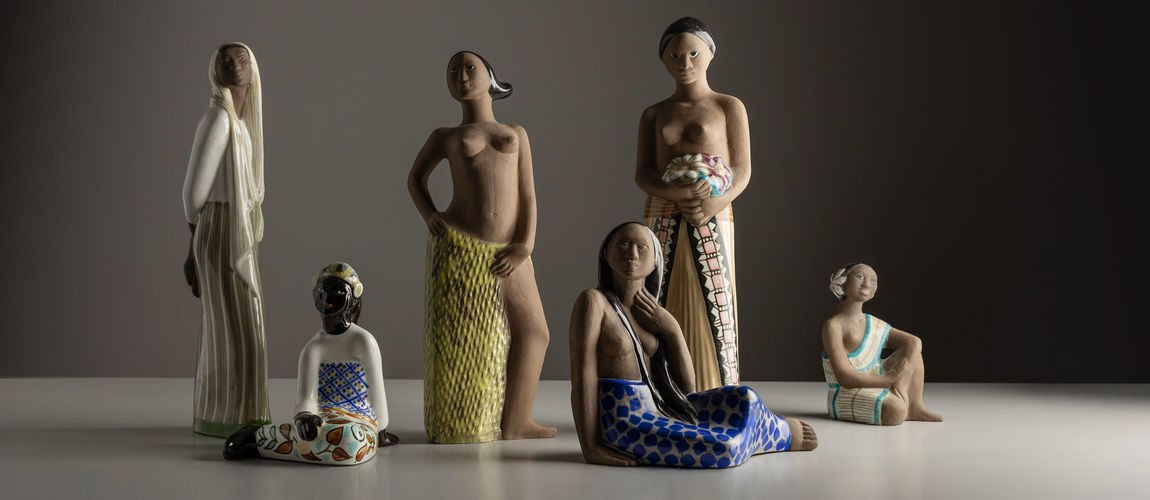 Hos Auktionshuset Kolonn möter vi sex av hennes skapelser från tiden i Uppsala. Samtliga är kvinnofigurer och samtliga bär den typiska simmulsonska prägel hon gjorde sig känd för här i Sverige.