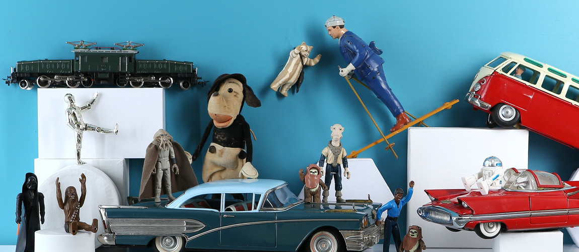 En välfylld leksaksauktion saknar sällan rälsburna fordon och så ej heller denna gång. Bland dessa utmärker sig ett dubbellokomotiv från Märklin av typen 800.5. Parkerade intill står en röd Lincoln Futura och en gräddvit folkabuss tillsammans med en Buick hardtop. Samlarobjekt alla tre. Utöver nämnda pärlor omfattar Leksaker från denna galax dockor, plastinolfigurer och allehanda dockskåpstillbehör.